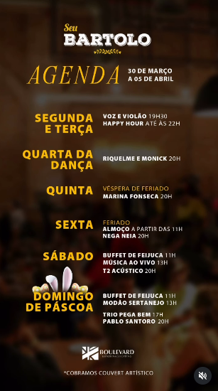 03 Abr 2026 Seu Bartolo: As reservas para o DOMINGO DE PÁSCOA já estão abertas! A vida é uma maravilhaaaa aqui no Bar da família Londrinense 😄💛 Bora curtir a...