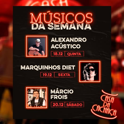 A semana já vem com trilha sonora pronta aqui na Casa da Cachaça