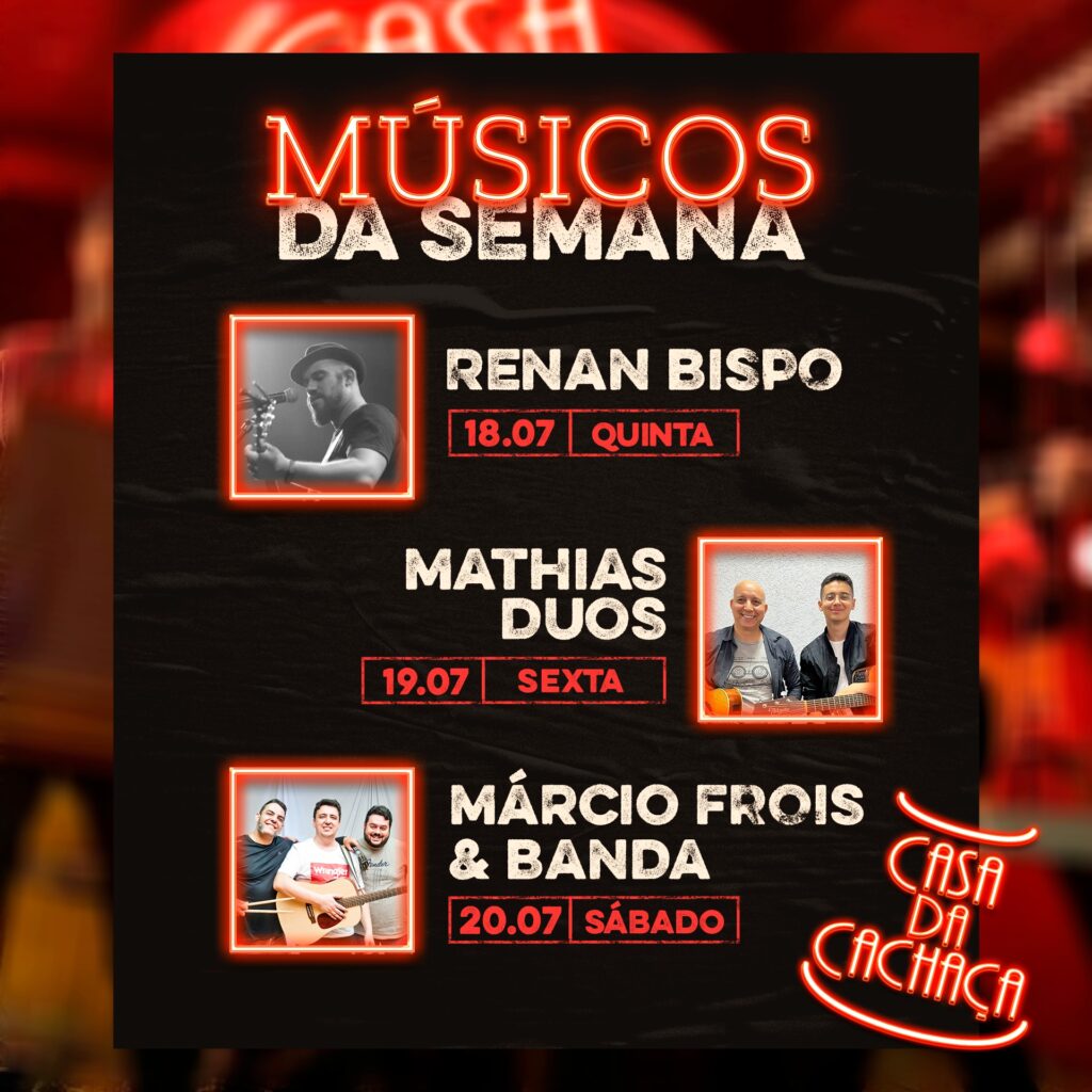 Confira os músicos da semana da Casa da Cachaça!