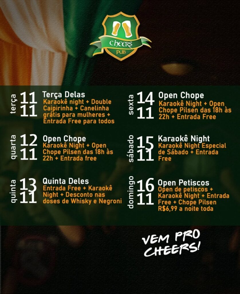 Open chopp das 19h às 22h30 – mulheres pagam R$29,99 | Homens pagam R$39,99 (Open chopp opcional)