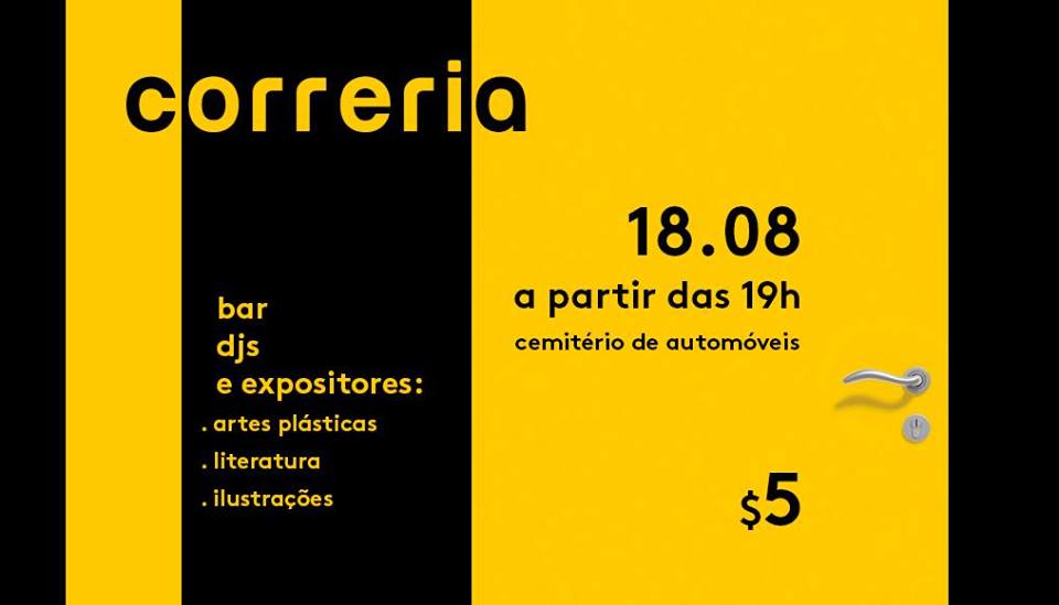 No dia 18 de agosto, sábado, acontece a 1ª edição da Correria: uma festa-feira ou feira-festa com bar, DJs e expositores de artes em geral.