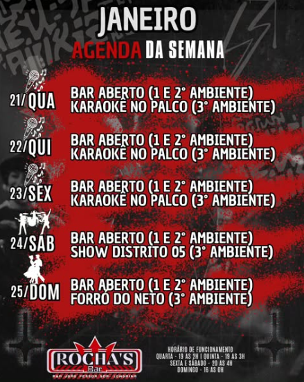 Confira o que está rolando no Rochas bar!