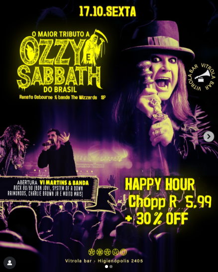 Festa à fantasia + Flash Tattoo com @tattoo.neto Banda @bandacometz mandando tributos a Queen, Ozzy/Sabbath, Kiss, Michael...