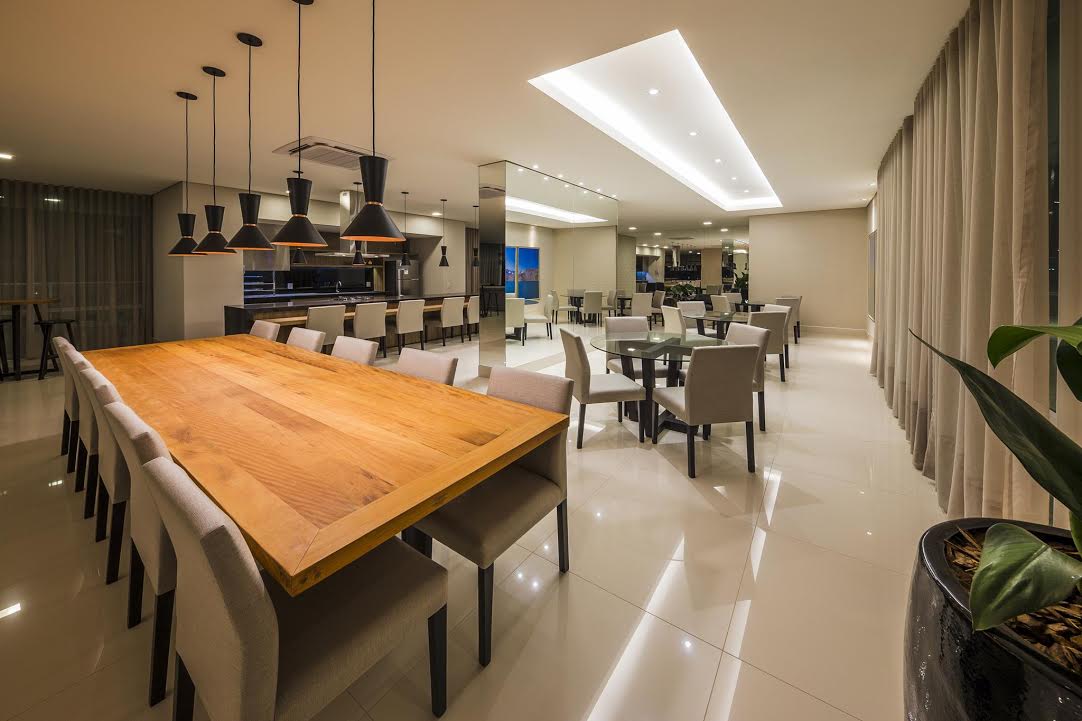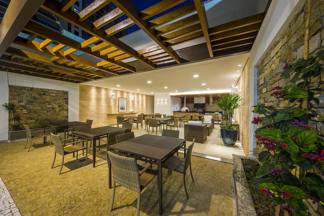 Outra inovação é a infraestrutura para aspirador de pó central. Em cada cômodo existe um ponto para o aspirador, o que facilita a limpeza e evita riscos no chão e nas paredes com a circulação do aparelho. A ampla varanda gourmet integrada ao living, permite que os moradores recebam os amigos com conforto e possam cozinhar no mesmo ambiente. A infraestrutura para a chopeira otimiza o ambiente e cria mais oportunidades para confraternizações.