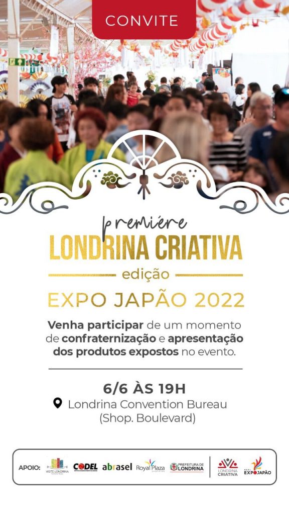 No dia 6 de junho, a partir das 19h, a feira itinerante Londrina Criativa fará uma première para o público. Será uma noite de pré-estreia, no Hub do Londrina Convention Bureu, no Boulevard Shopping Londrina, para convidados e também aberto ao público, que poderá conhecer alguns dos expositores que estarão na Expo Japão, além de poder comprar alguns produtos que estiverem sendo comercializados. Na première, haverá apresentação do grupo Bon Odori da Acel.